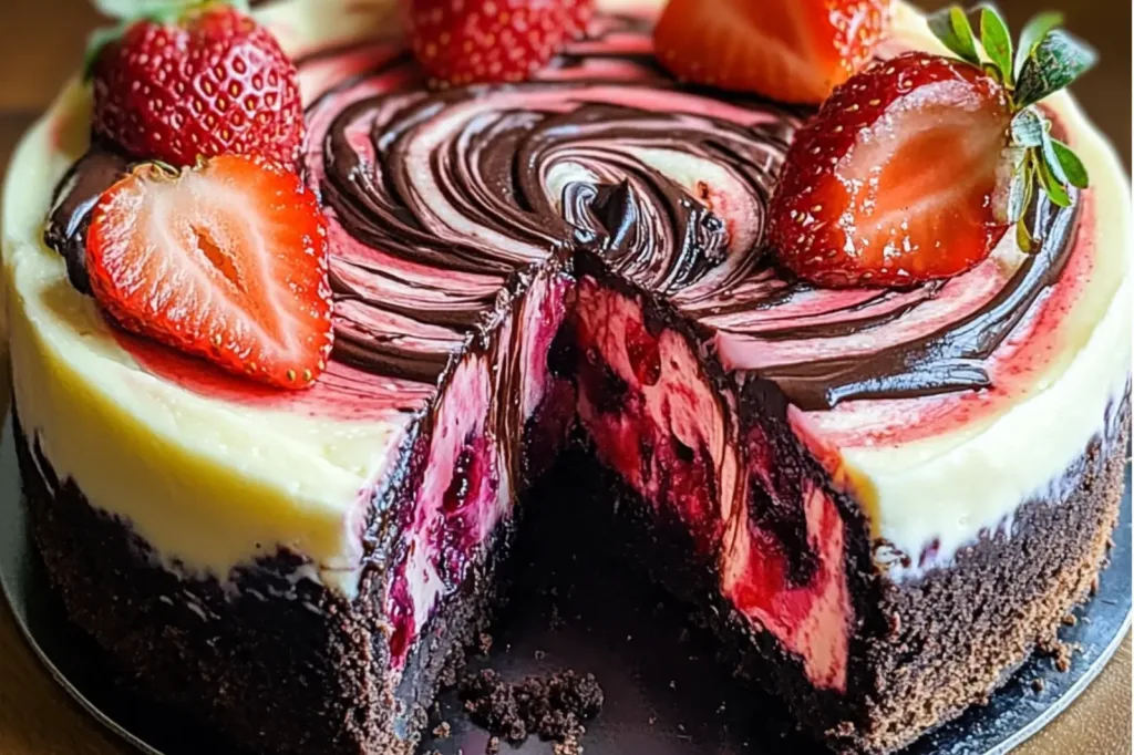 Easy Chocolate Strawberry Swirl Cheesecake Recipe